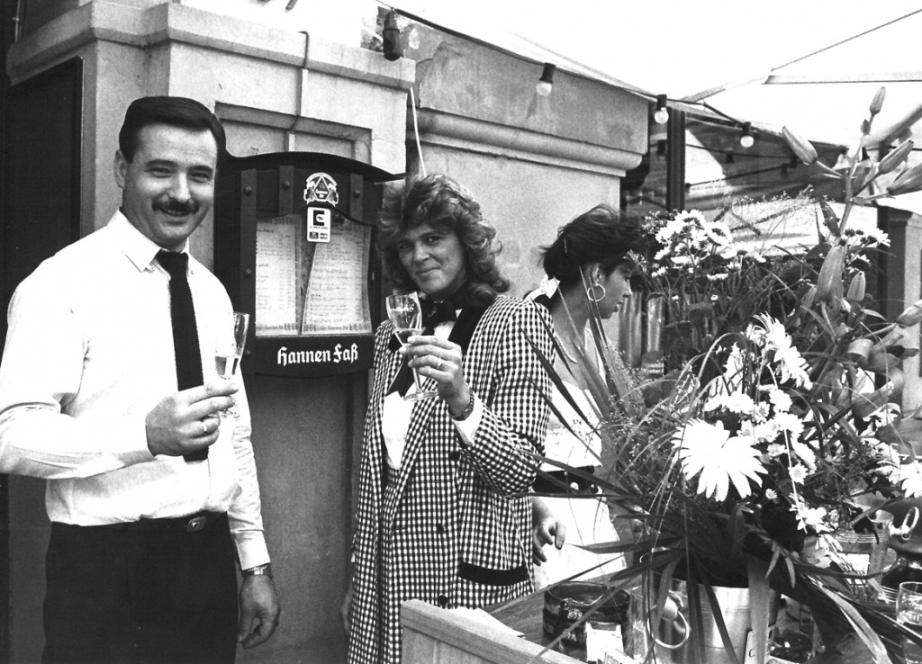 Erfolgte â abermals nach Bitten der Kunden und auch der Gastronomen der Stadt Wiesbaden â dieses Equipment auch zu verleihen, die GrĂŒndung der Theoâs Gastro Vermietungs-Service GmbH. Diese ist heute zu einer festen GröĂe im Rhein-Main-Gebiet in der Veranstaltungsbranche herangewachsen. Mit dem stetigen Wachstum der Eventbranche entschlossen sich meine Eltern, mit einem weinenden und einem lachenden Auge, die LokalitĂ€t aufzugeben. Das lachende Auge fĂŒr die uneingeschrĂ€nkte Aufmerksamkeit auf den GeschĂ€ftsbereich Verleihservice. Das weinende fĂŒr die schönen Stunden, die man mit den GĂ€sten und Freunden des Hannen FaĂ aufgeben musste.